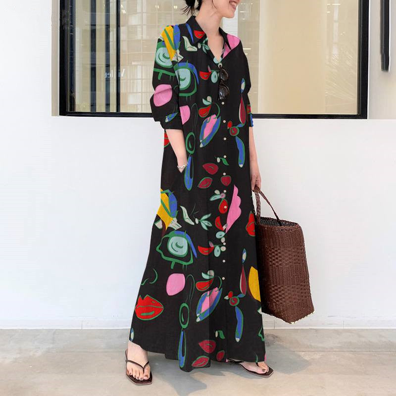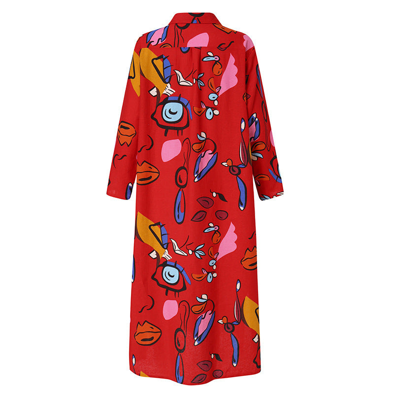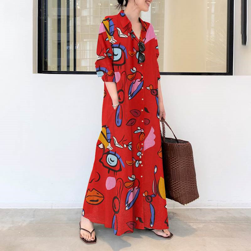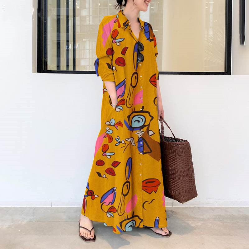 Retro Loose Long Sleeve Lapel Dress Printed Cardigan